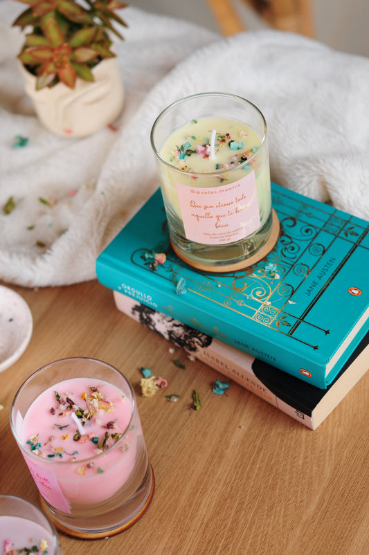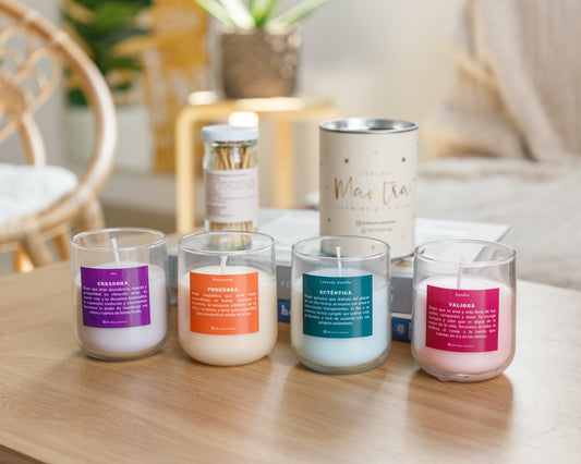 Velas Aromáticas de cera de colores, colores, esencias y mensajes variados