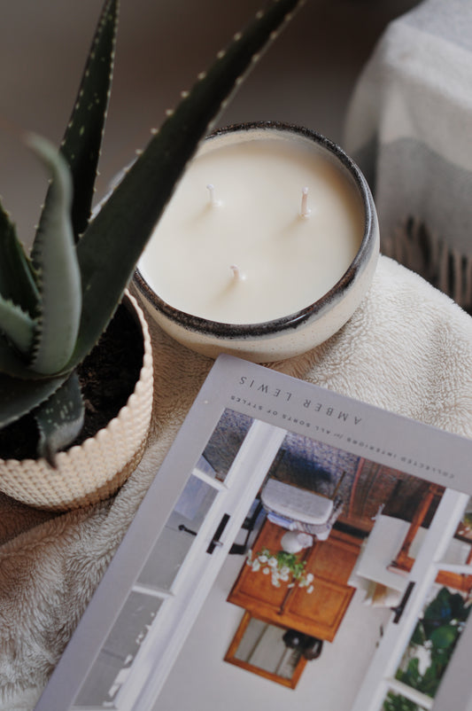 Velas Aromáticas en Cerámicas Orgánica, de 3 mechas