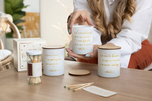Velas Aromáticas con Mensaje: Que todo lo bueno te siga, te encuentre y se quede contigo