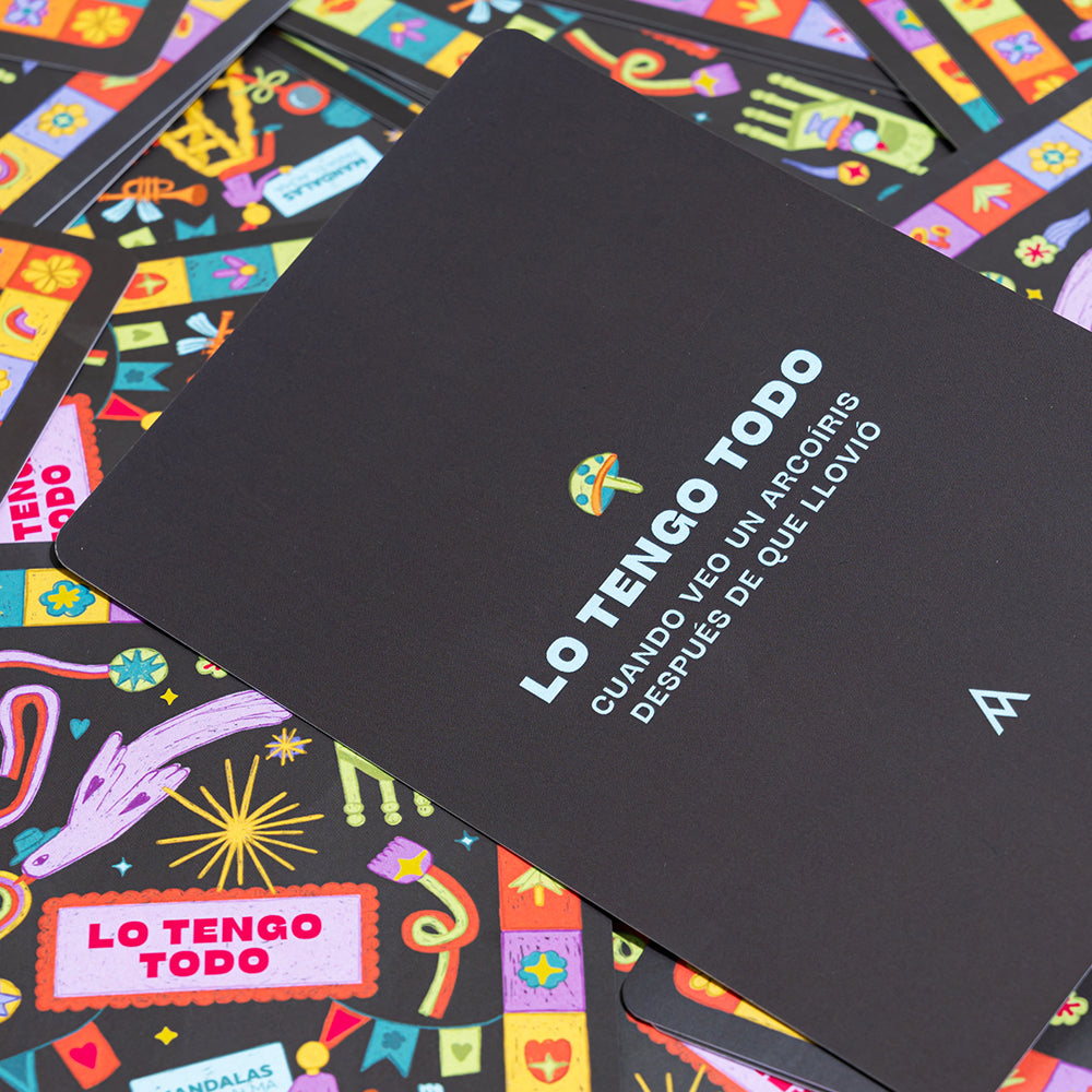 Cartas Lo Tengo Todo es la segunda parte de nuestra herramienta superestrella, Cartas de Agradecimiento. A través de 5 mundos: victorias personales, sentidos, niño interior, regalos inesperados y recuerdos, encontramos nuevas razones para agradecer. Y lo más cool de esta nueva versión es que también trae un libro con mensajes y 10 cartas ilustradas.